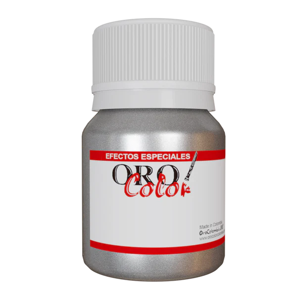 Pigmento de lustre metálico, utilizado para la decoración en diversas superficies (tela, madera, cerámica, pa- pel, cartón, etc.)